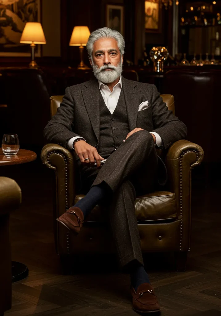 Personally, I think this is the kind of look that makes heads turn in the city. It’s confident without shouting for attention, and those brown loafers against navy give it that rich, stylish balance. It’s exactly the sort of outfit that proves old money elegance is all about subtle choices.