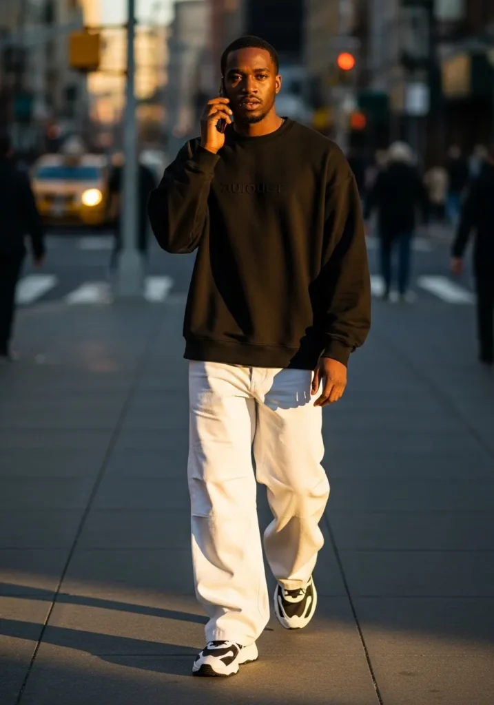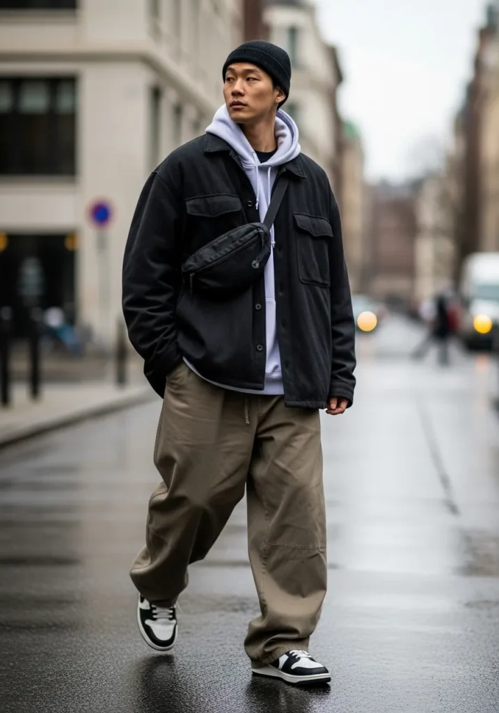 I love this kind of outfit because it feels elevated but still casual. It’s perfect for someone who wants streetwear with a slightly refined edge.