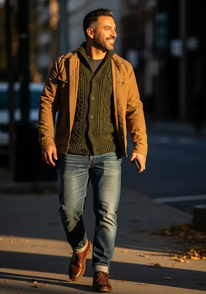 I put this together thinking about outfits I would actually want to see on a guy during crisp mornings, coffee runs, and casual weekends.