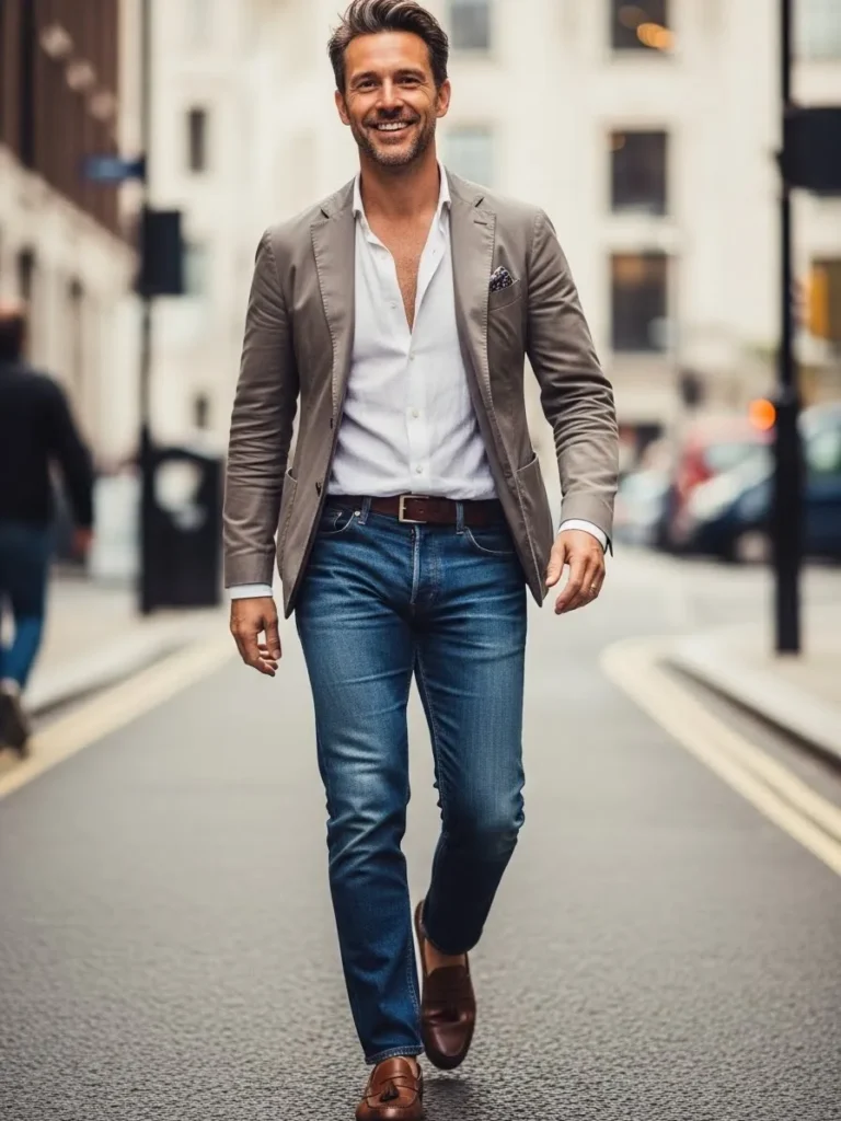 The jeans add a relaxed feel while the blazer keeps it elevated.