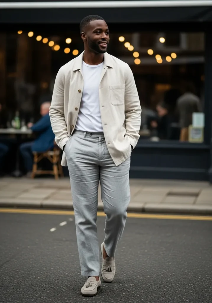 Casual Linen Shirt with Slim Neutral Trousers