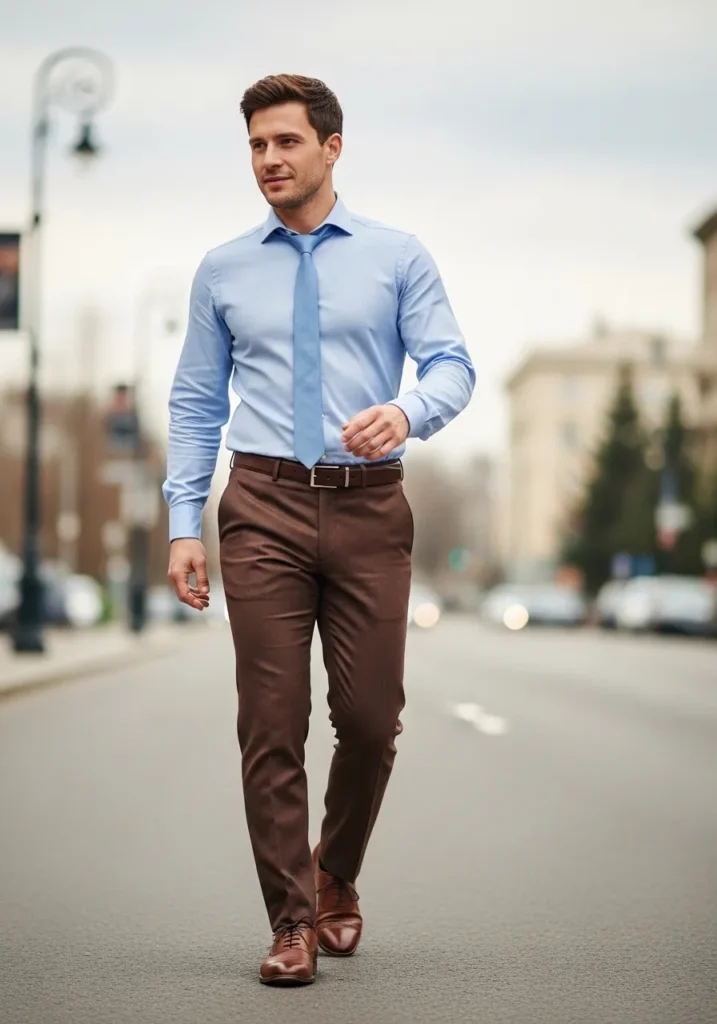 Light Blue Shirt with Classic Brown Office Trousers
