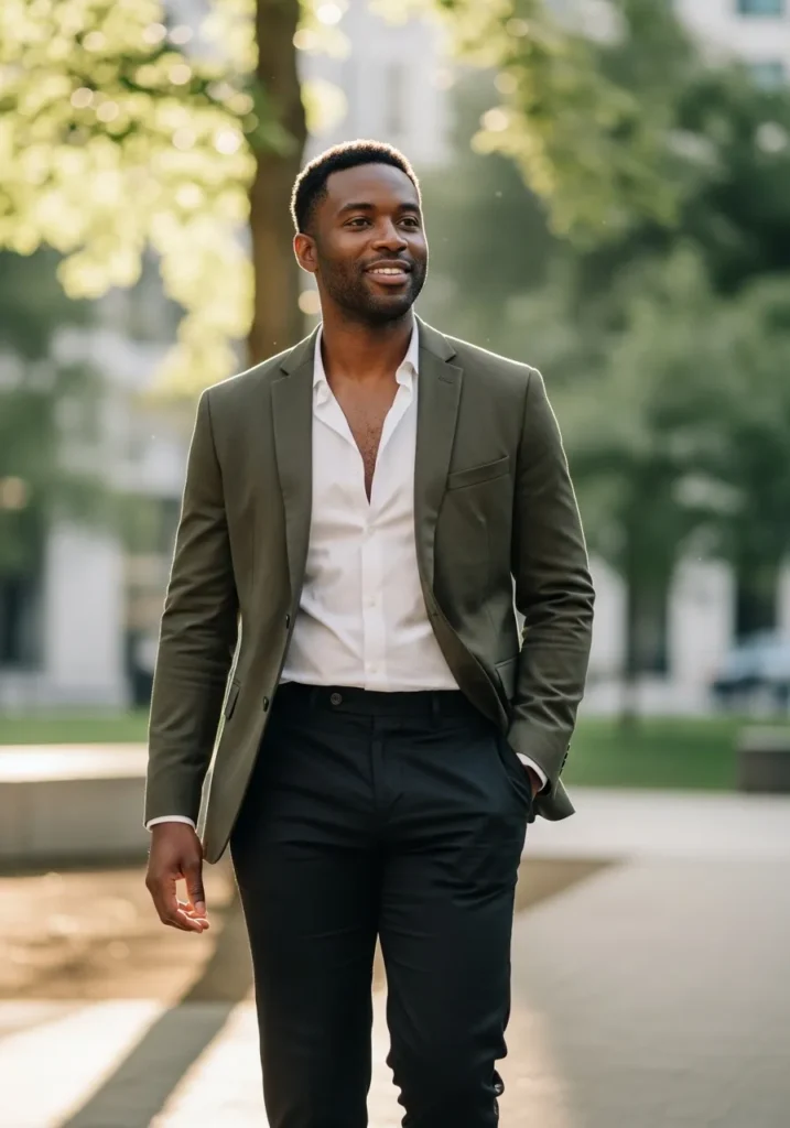 Olive Blazer With Black Trousers