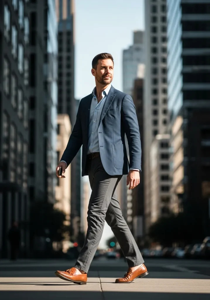 I really love how balanced this outfit feels from head to toe. The navy and grey combo is classic but never boring and the brown shoes add just the right amount of warmth. This is one of those looks that feels effortlessly attractive and works in so many real life situations which is exactly what great business casual should do.