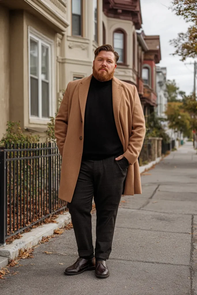 Cozy Camel Overcoat and Black Turtleneck