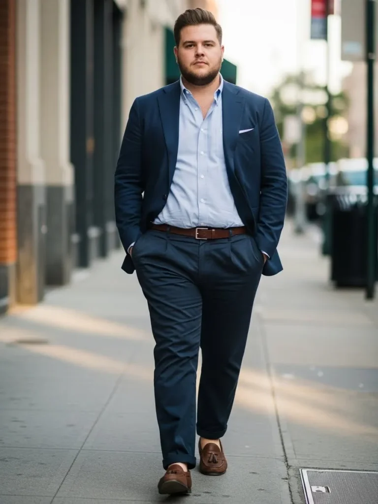 I think this look is such a safe and stylish choice for plus size men.