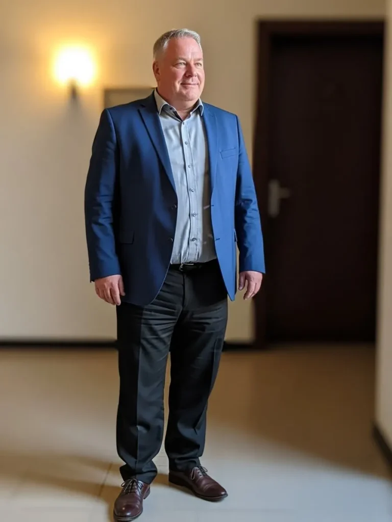 Classic Blue Suit with Soft Indoor Lighting