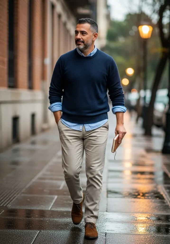• Navy Sweater With Light Chinos