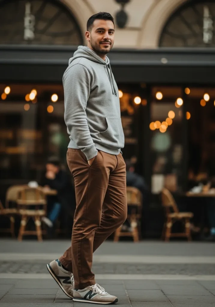 Casual Brown Pants with Classic Gray Hoodie