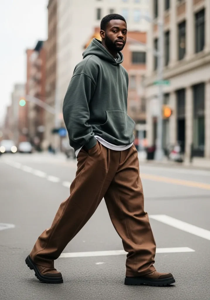Oversized Brown Trousers with Relaxed Hoodie Vibe