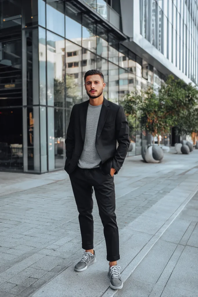 The Minimalist Black Suit and Stylish Sneakers Blend