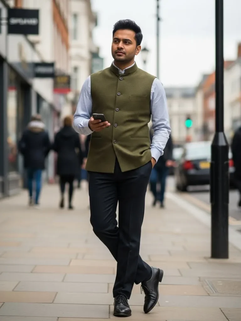 Olive Vest With Modern Layers