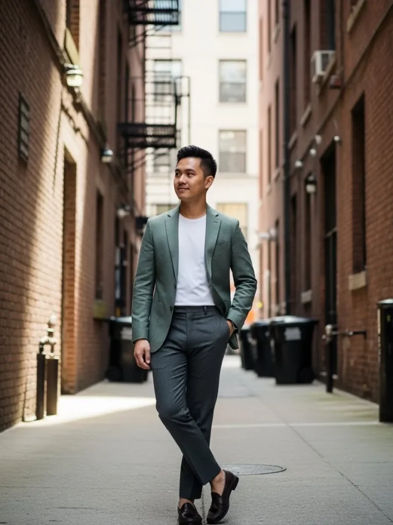 Sage Green Blazer With Light Gray Pants