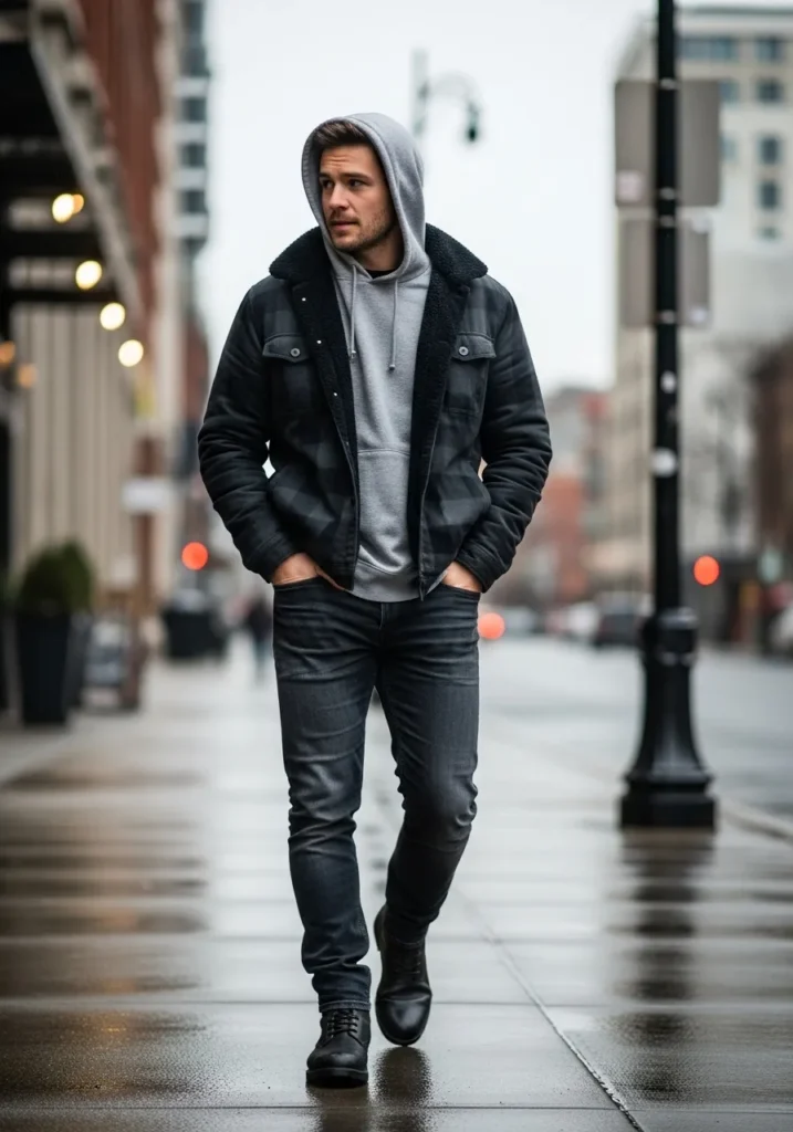 I love this because it proves hoodies can look good when styled right. It feels youthful and warm without losing that sharp edge. This is perfect for guys who want comfort but still care about how they look.